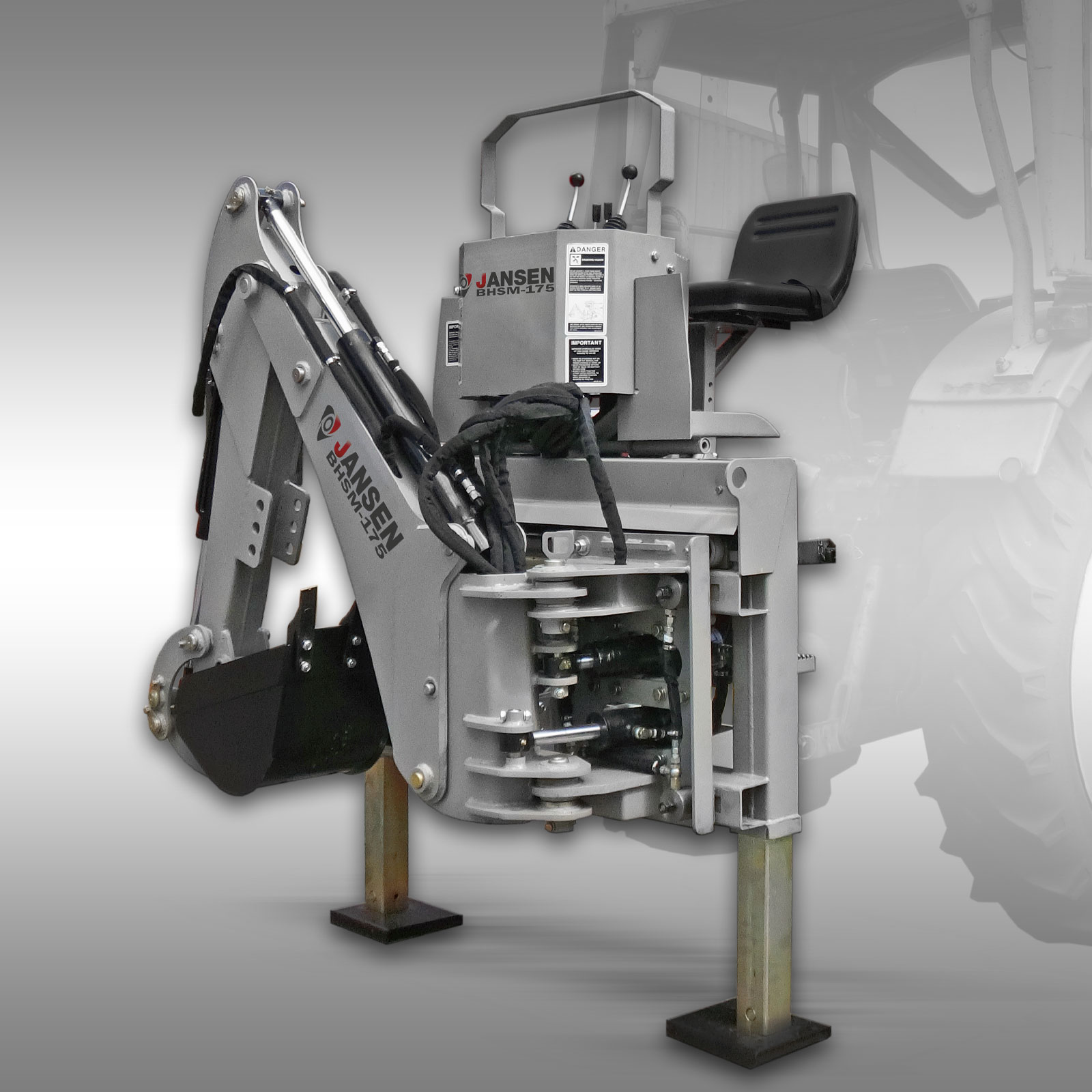 Podhop Jansen BHSM-175 sa pripája k trojbodovému závesu vášho traktora a je poháňaný priamo vývodovým hriadeľom (je súčasťou balenia). Má vlastný hydraulický systém, takže na strane traktora je potrebné iba napájanie z vývodového hriadeľa. BHSM-175 je z výroby vybavený 300 mm lyžicou. Rameno sa otáčať o 180 stupňov do strán, čo poskytuje veľký pracovný rádius!