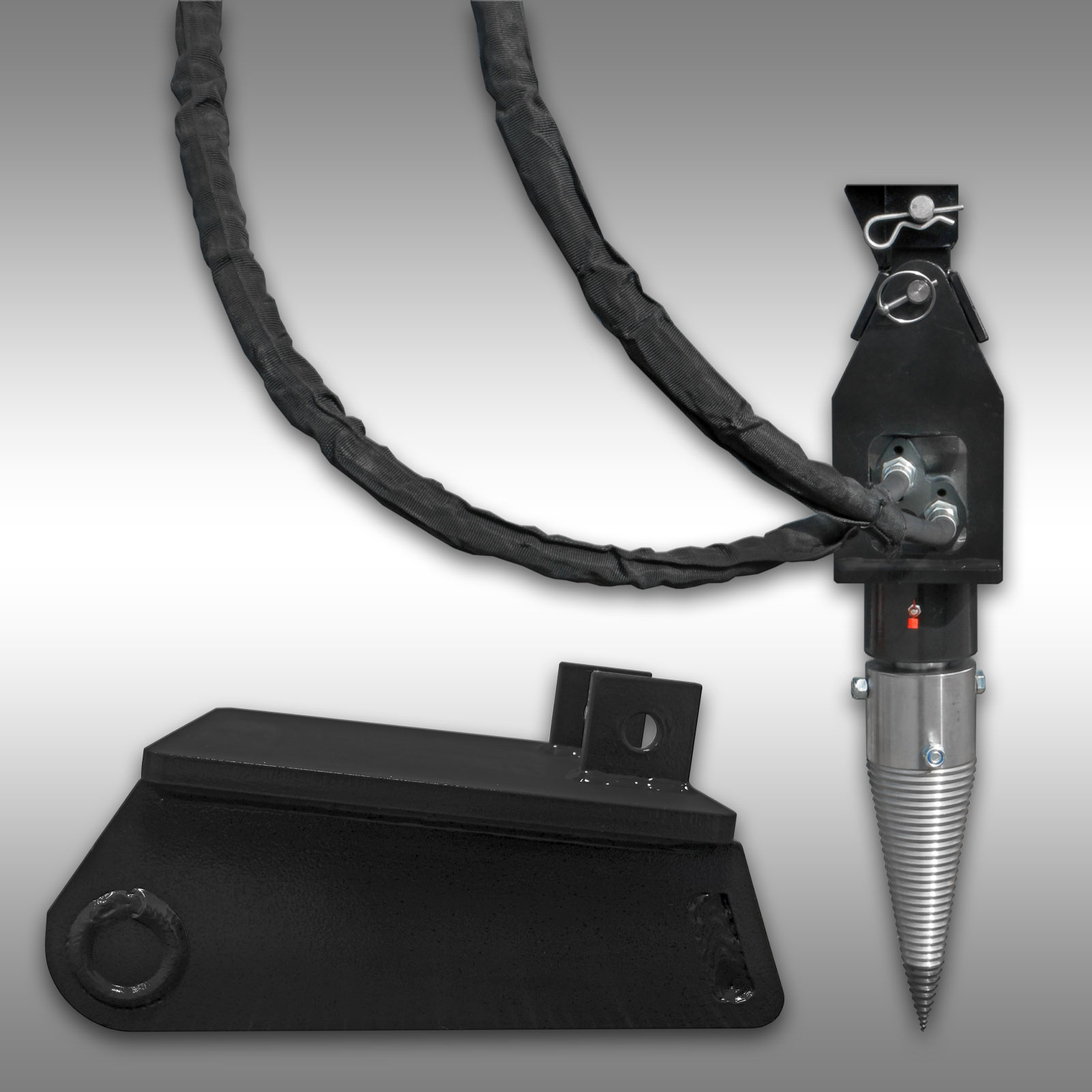 Voliteľne prepracovať váš kužeľový štiepač a použiť ho ako zemý vrták, výber vŕtakov je veľký, v rozmedzí od 150 mm do 450 mm - v závislosti od vašich potrieb, použitia a prítomného nosného zariadenia. Všetky zemné vrtáky alebo závitovky v našej vrtnej súprave traktora TBG-100 a TBG-200 sa hodia do kužeľového rštiepača Jansen JSK-350. Vŕtaky nájdete v našom obchode alebo nás kontaktujte!
